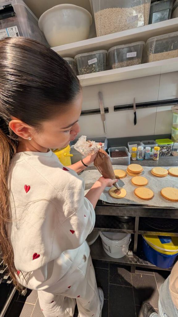 Frau Thiel-Harlos, Team Aus- und Weiterbildung, informierte die Klasse zunächst über die vielfältigen Ausbildungsmöglichkeiten innerhalb der Kissel-Gruppe. Anschließend durften die Schülerinnen und Schüler in Kleingruppen vier verschiedene Stationen im Markt durchlaufen. Im Kassenbereich erfuhren die Jugendlichen einiges über Abläufe und Neuerungen in der Automatisierung des Check-Outs. Im Getränkebereich sorgte vor allem der Blick in den Pfandautomaten für großes Erstaunen. Am Käse- und Fisch-Rondell konnte viel über die Hygiene im Umgang mit Lebensmitteln gelernt werden. Hier durften auch nicht ganz so bekannte Käsesorten probiert werden. Das Highlight für die meisten Schülerinnen und Schüler war der Besuch der Bäckerei, ein Ort, an dem Kreativität und Begeisterung aufeinandertreffen. Das Anfertigen eines eigenen Gebäckstücks bildete den Abschluss des Rundgangs durch den Markt.